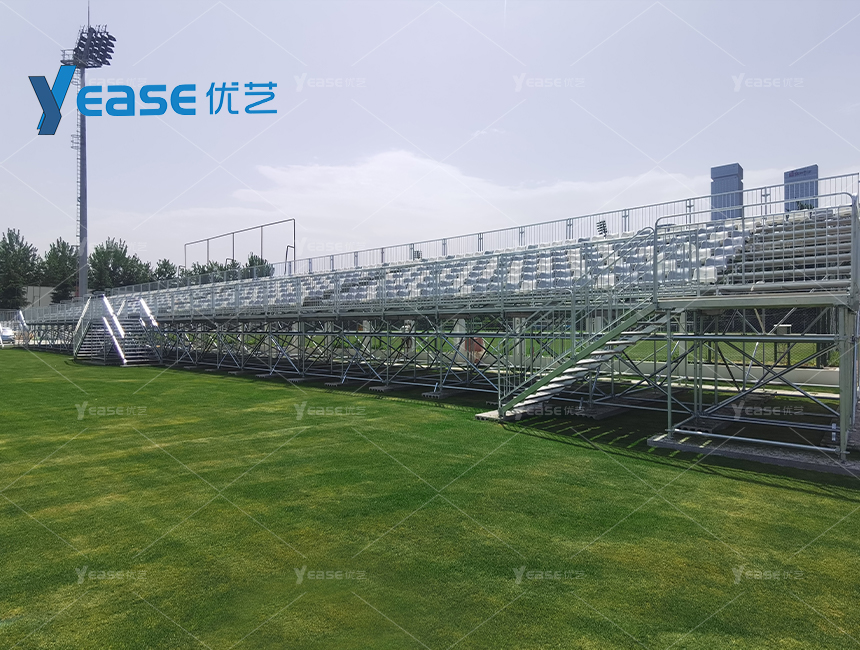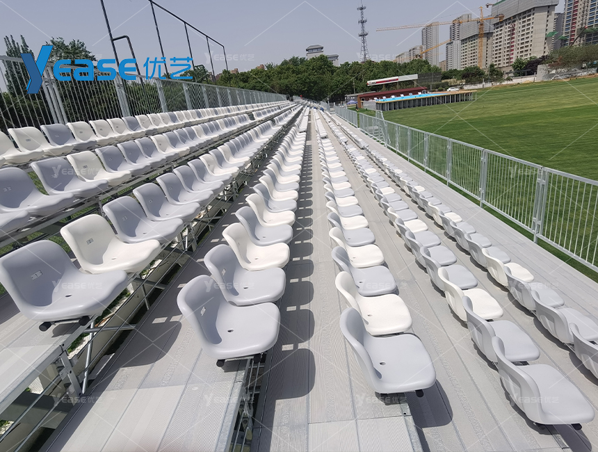 堅固耐用的鋼結構看臺系統(tǒng),滿足戶外場館長期使用與高承載要求。